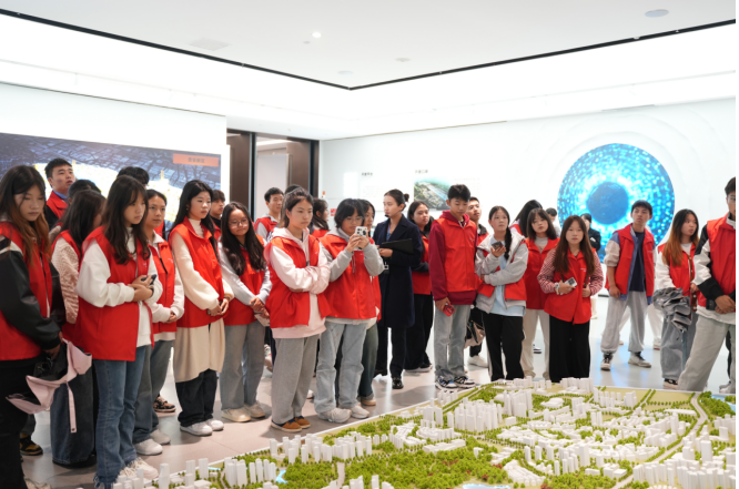 下午1点,三辆大巴车从三所高校准时出发,载着满怀热情的同学们前往贵阳城乡规划展览馆。进入大厅,吸引大家视听的便是“爽爽贵阳 欢迎您”贵阳贵安人才宣传片;接着在展览馆工作人员的带领下,同学们参观了各个展区,也从工作人员的讲解中对贵阳贵安的城市发展、城乡规划建设等方面有了更新的认识。